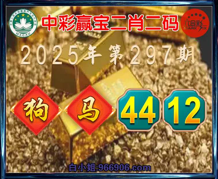 297期:《中彩赢宝》 👛二肖二码👛【狗马】【44.12】开:狗44准